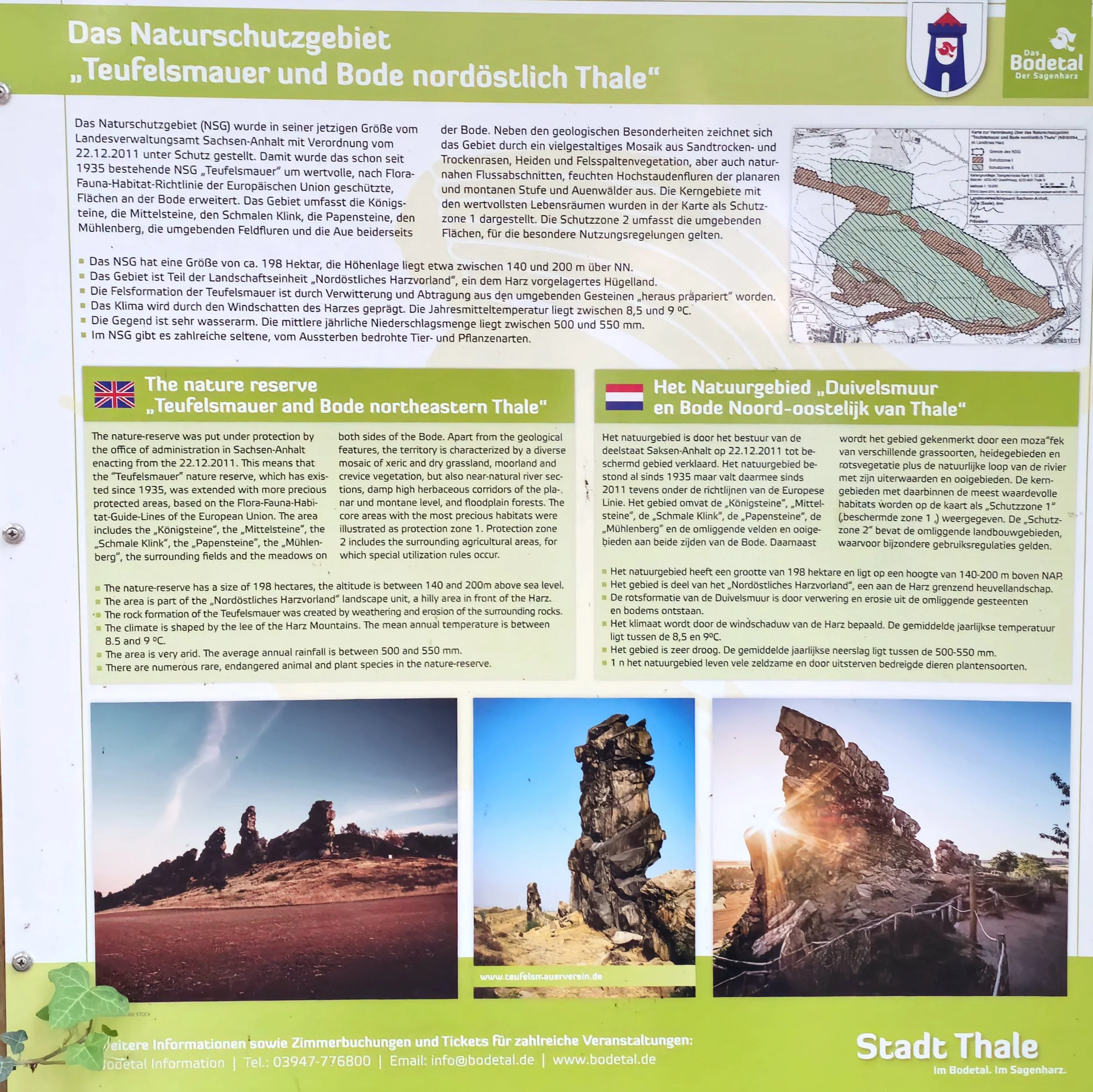 Enter either ‘Parkplatz Teufelsmauer’ ‘ or the official adress (Quedlinburger Str. 13, 06502 Thale) into your navigation system to get there.